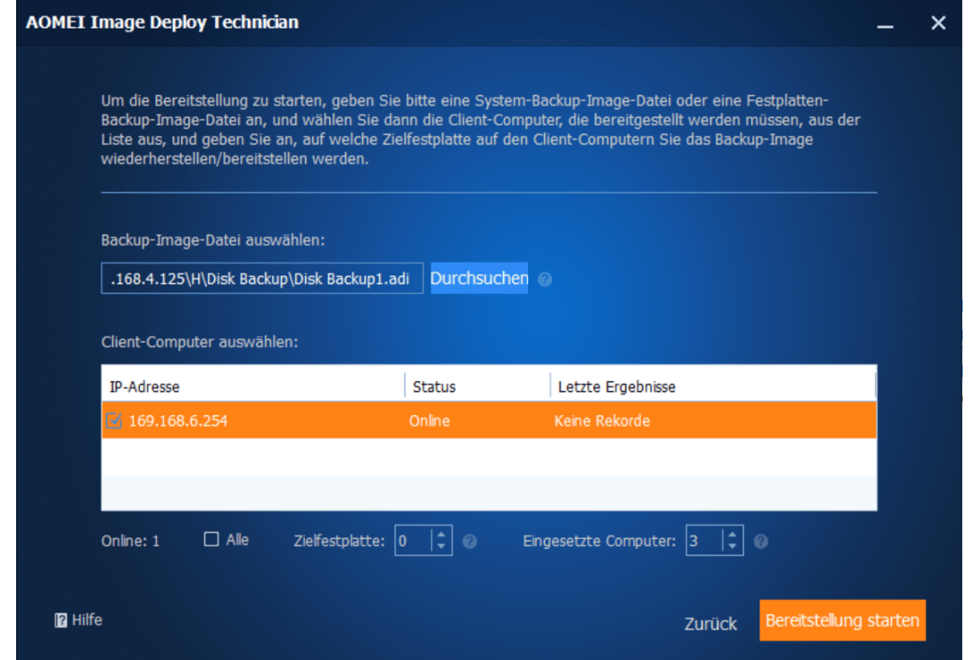 Stellen Sie ein Systemabbild auf mehreren Computern oder Klonen mehrerer Computer über das Netzwerk wieder her.