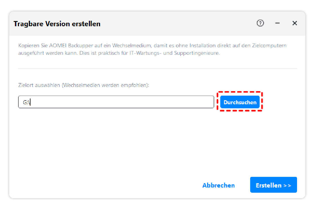 Installieren Sie UBackup auf einem Wechseldatenträger, damit Sie es direkt auf Zielcomputern ohne Installation ausführen können.