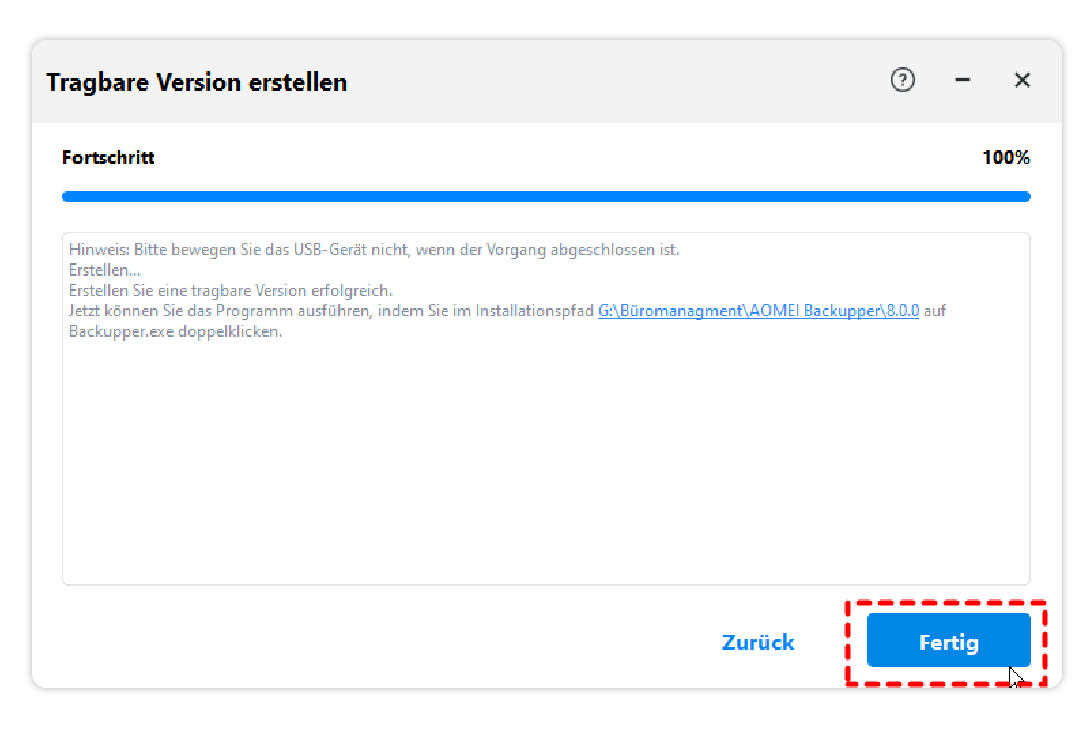 Klicken Sie auf „Starten“, um die Prozessseite zur Erstellung einer portablen Version zu starten.